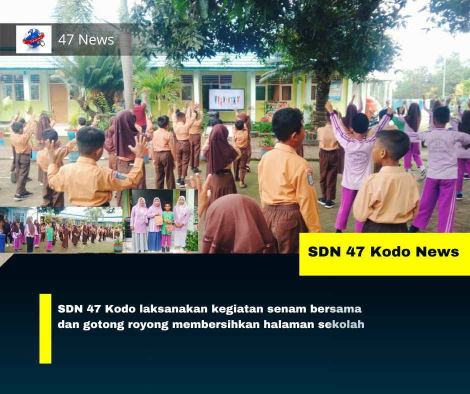 Kodo- Sabtu (10/1) SDN 47 Kodo melaksanakan kegiatan senam bersama yang dilanjutkan dengan gotong royong membersihkan halaman sekolah. Kegiatan ini diikuti oleh seluruh siswa, guru, dan tenaga kependidikan sebagai upaya menumbuhkan kebiasaan hidup sehat serta meningkatkan kepedulian terhadap kebersihan lingkungan sekolah.
